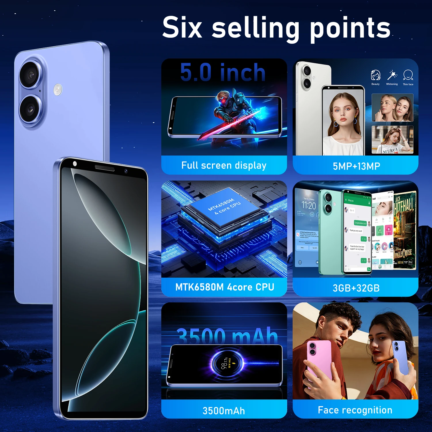 FUFFI-I16 Plus,Smartphone Android,5.0 inch,3+32GB ROM,Dual SIM,3500mAh,Mobile phones,Dual SIM,Google Play Store,Cellphones